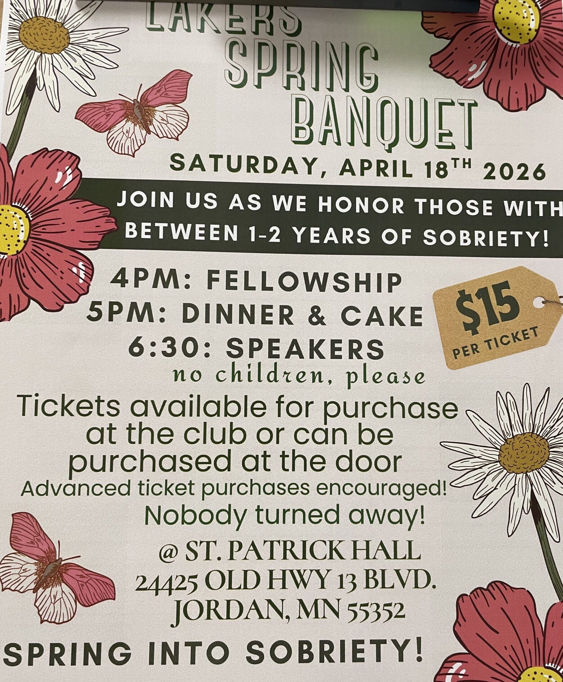 What to Expect: Our annual celebration honoring members with 1–2 years of continuous sobriety. Features speakers from AA, Al-Anon, and NA, along with dinner, cake, and fellowship.